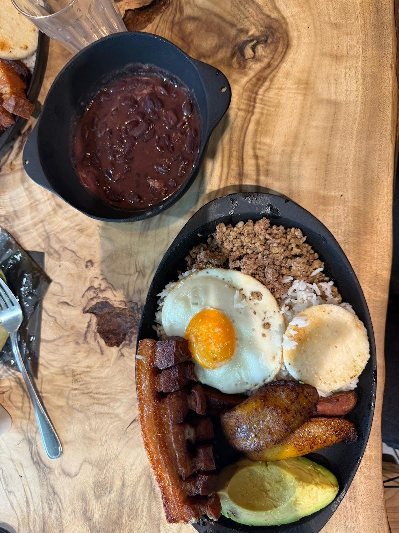 It’s my first time having Colombian food😋 I had COLOMBIAN SPECIAL BANDEJA PAISA. They are seasoned simple basically 😚 It’s not various spiced food😚 Pork belly was chewy the skin parts 🙁 But it’s better to eat mixed each ingredient together 😚👍🏻 I liked crunchy skin chorizo 🥳 Meaty taste was so good ☺️ Fried sweet plantain was interesting 😳 I got served salt and pepper but I didn’t need it 😉 It was a quite big portion, is it for one person???😅 I had all but super full after that🤣😮💨 Friendly service 😘 Just the seat was uncomfortable for me… it's quite old?? And a cup for the water looked filthy… it's clean maybe but looks no good😣 I’m very interested in other Latin food😋 I’d love to come back for more of their dishes 🤗