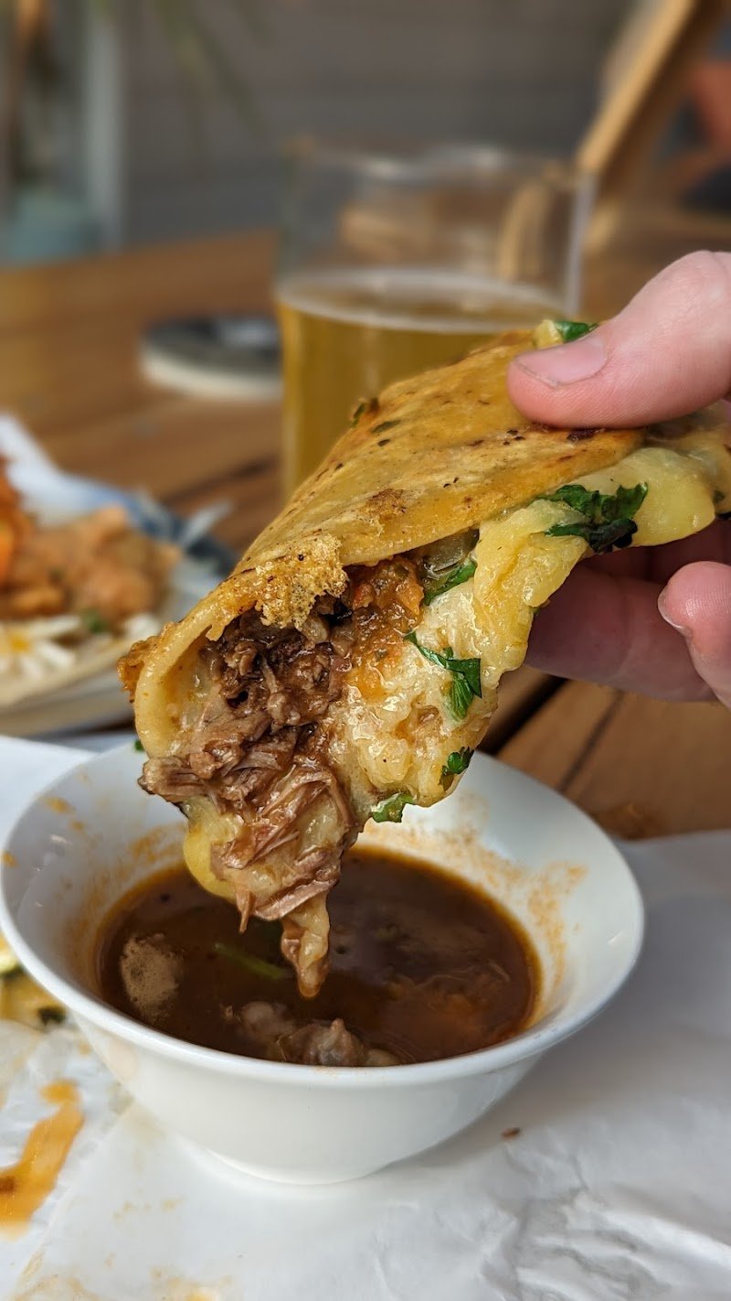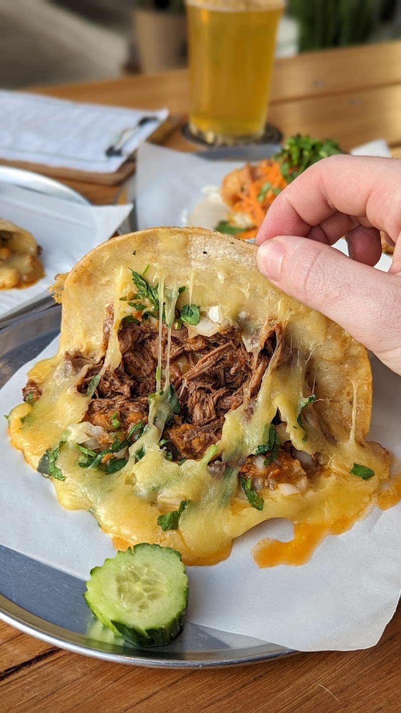 Very friendly service and excellent tacos and beers. The chips with hot queso and bean dips are really good too! Edit 2025: Been coming here on and off for two years. I am currently totally obsessed with their nachos, as is or with beans or beef. I think we must have ordered it 20x already. Paired with beer or margarita. A perfect lunch.
