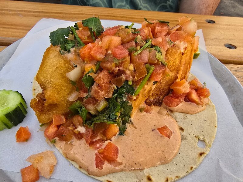 We got the fish taco and chicken taco. Big portion sizes. Packed with flavor. Outdoor seating with fans and misting so it was warm but cool. Paired it with thr tasting platter of drinks from the brewery. I'd highly recommend!!